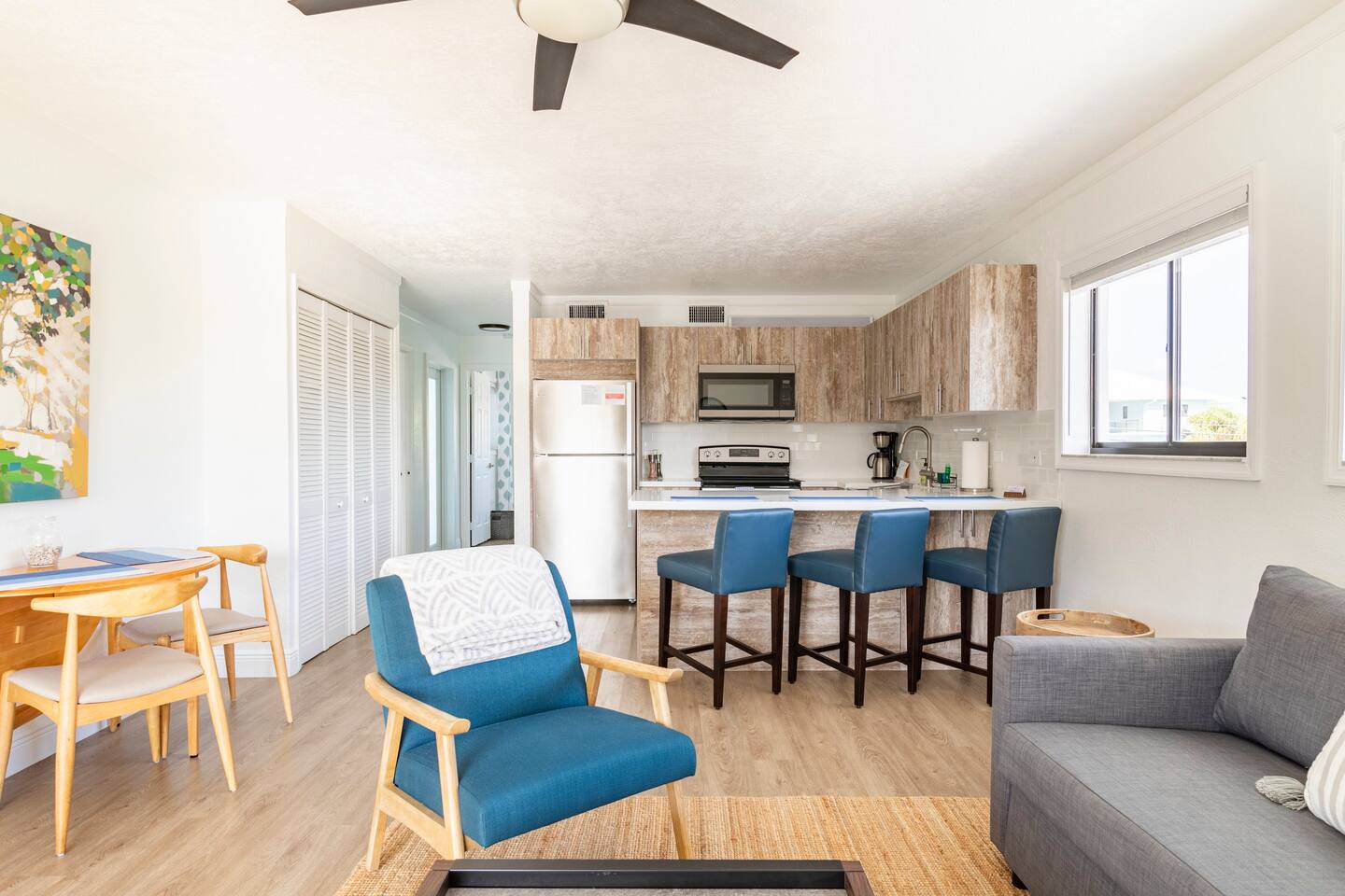 Our bright and airy 2-bedroom, 2-bath condo comfortably sleeps up to 6 guests — perfect for families, couples, or groups. The open living area features plenty of natural light and a relaxing balcony overlooking the canal and boat slips. The fully equipped kitchen makes cooking easy, whether you’re preparing a quick breakfast or a fresh seafood feast. Enjoy modern comforts like high-speed Wi-Fi and air conditioning. Plus, your private boat slip puts water adventures right at your doorstep!